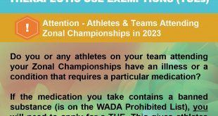 Read More »Therapeutic Use Exemptions (TUEs) Education for athletes and teams participating in Zonal Championships